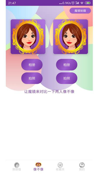 魔镜颜值测试是一款很有趣的App,主要功能就是测颜值和分析脸型五官。打开软件后可以直接上传照片或者现场拍一张,它会快速识别你的脸部特征,给出颜值分数和其他参数比如年龄、脸型、眉毛等。测试完还能分享到微信、QQ这些社交平台,跟朋友一起玩。特别是双人对比功能挺有意思的,可以看看你和别人谁更像明星,或者谁长得更相似。