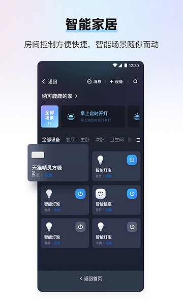 天猫精灵APP是一款阿里巴巴集团旗下的智能家居APP,能够和天猫精灵智能设备进行连接使用,该软件界面优美简洁,应用程序细腻流畅,并且支持淘宝账号一键登入,非常方便好用。通过这款软件我们可以远程对该设备进行控制,同时也能识别和连接其它智能家居设备进行远程控制并查看其状态,还能在智能设备、智能服务、智能内容之间建立场景化联动,为大家的生活提供了非常多的便捷。此外,我们还可以用软件进行语音点播音乐或者其它节目,既然是阿里巴巴旗下的产品,那当然少不了购物了,这里同样也能进行网购,还有非常多的优惠券和打折商品,绝对是家庭中不可缺少的一个神器,更有声纹管理、外卖地址、话费充值、火眼书城、生活缴费等系列服务功能,带给用户全新的智能生活体验。