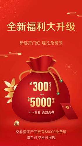 1、赠金高达5000美金,当天开户充值再送600红包。