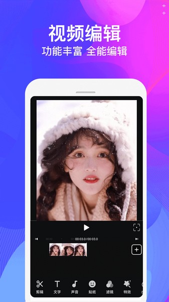- 添加字幕、贴纸、滤镜、特效