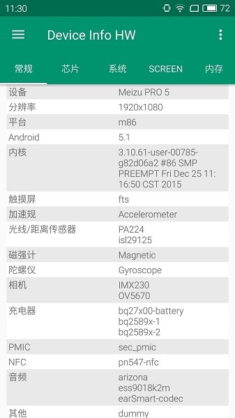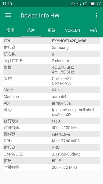 device info hw是一款适用于检测安卓手机配置的软件。这款软件会根据手机的各部分配置进行详细的检测并将最终的结果呈现在界面中,用户可以按照系统功能版块的分类来查看每个硬件的详细参数,内容非常的详细,能够用户对自己手机的性能有更加清晰的了解。软件能够支持的检测项目会随着版本的更新变得更多。