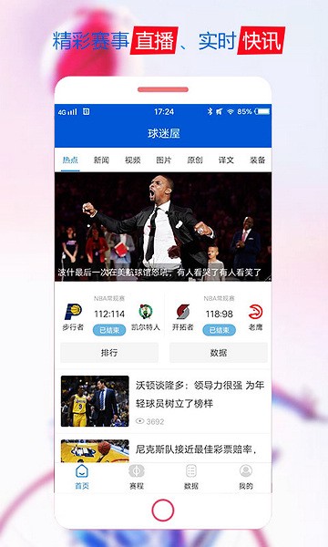 查看实时赛事资讯、实时比赛数据以及历史数据、赛后高清图片的同时,为你带来文字事件直播,与传统文字直播不一样的是,文字叙述过程中会带来比赛精彩时刻的镜头以及跟队记者的动态,新模式新潮流的形式是不是不再感到枯燥无趣了?在你忙碌中,无法观看赛事时,打开球迷屋通过文字事件直播也可以了解比赛中的每一个细节。同时会有数不胜数的球迷与你一起享受篮球,分享篮球。没有做不到的,只有你想不到的!