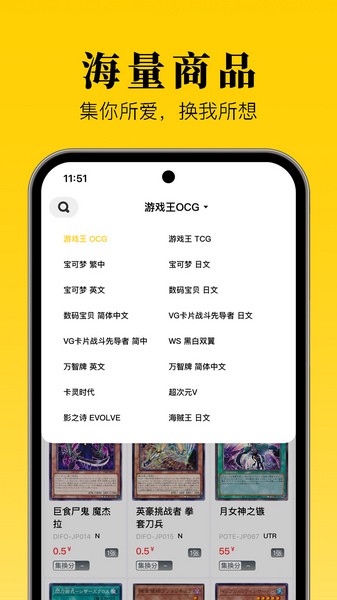 1、在这里可以让大家自由交易的实体卡牌,让大家无限制的进行购买。