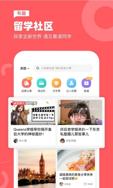异乡海外生活APP是一款主打海外生活服务的软件,如果留学海外,想要更好的在异乡生活的话,那么这款软件绝对是个不错的选择,其准备了多种功能可供用户随心使用,并网罗了全球公寓房源信息,在线一键预订,让你轻松找到一个落脚点!同时更有众多院校资讯可供用户进行浏览,众多学长学姐倾情推荐的好物、生活、学习经验等,为你提供更多便利!在这里,你不仅可以了解校园、日常、租房、旅游等各方面信息,还能听到学长学姐们的实用建议。异乡直播为用户提供了一个全新的留学交流平台,让海外生活充满趣味与可能。