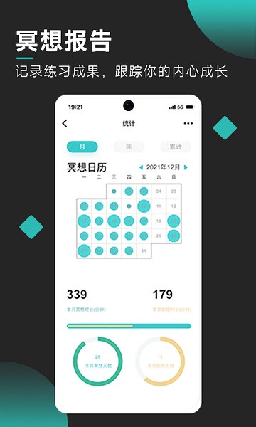 你完成的每一次冥想、记录的每一刻感悟,都将被好好保存下来。冥想记录时间轴,帮助你回顾冥想历程,让你更有计划的坚持下去。