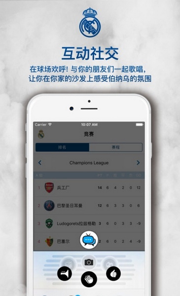 互动交流社交媒体:在足球场喝彩!与你的朋友们一起演唱,让你在家里的沙发上体会伯纳乌的气氛