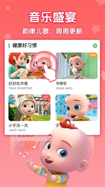 儿歌JoJo是一款非常实用的儿童教育软件,若是想要为孩子进行早教启蒙,那么这款软件便是一个不错的选择,其汇集了海量优质内容可供孩子进行浏览,以儿歌、卡通形式吸引孩子的注意力,更有英语教学,帮助孩子从小接触英语,非常适合0-6岁儿童进行使用!
