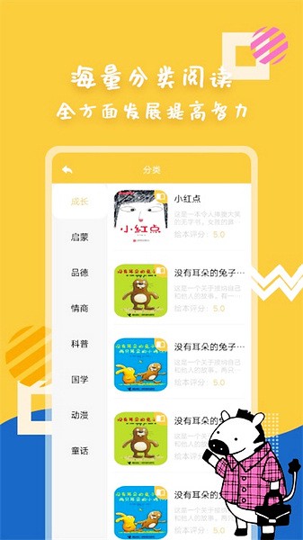 拥有多种多样的阅读类型,启蒙、国学等多种绘本以及多种故事应有尽有