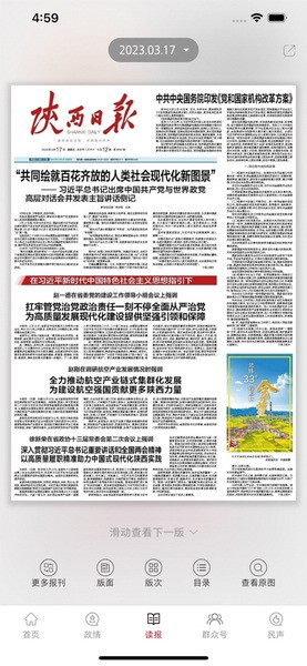 5、再就是读报功能,APP内每日实时更新陕西日报,电子读报更方便;
