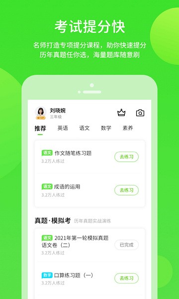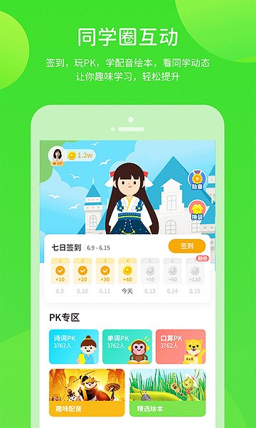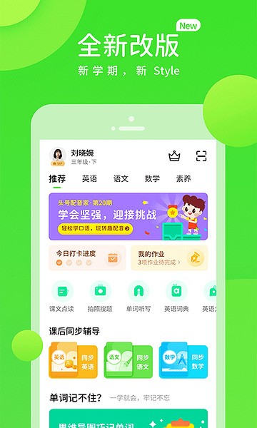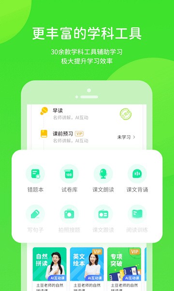 字词闯关、作文宝典、课内同步学、老师作业、课文跟读、名家朗读