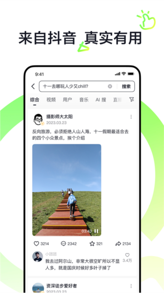 总的来说,抖音搜索不仅提升了内容获取效率,还让搜索过程变得有趣。如果你喜欢短视频和多元化的内容体验,这款App绝对值得一试!