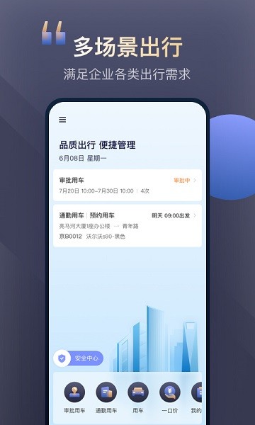 5、行程管理:通过企业出行的行程可以提前安排好用车事务;