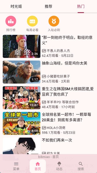 8.设置时间线后,在首页选择对应分区,即可查看所选时间范围的热门视频