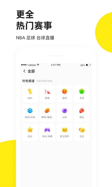 在这里你可以看NBA篮球直播,CBA直播,台球直播,英超直播,西甲直播,德甲直播,意甲直播,中超直播,足球直播,世界杯直播,体育直播等高清体育赛事直播在线免费观看 软件亮点 1、全新打造的NBA、足球新闻,秉承全面、专业、有趣的态度,为您提供7X24小时的资讯。 2、数百位风格各异的体育主播为您实时解说赛事,专业分析、精彩讲解。 3、不定期还有赛事竞猜、签名球衣、限量球鞋、苹果手机、NBA门票等各种抽奖活动,更多玩法等你来。