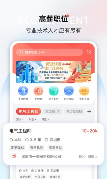 一览职业App安卓最新版是一款专为职场人打造的招聘求职神器,随时随地都能查看简历投递进度和面试邀请,绝对不会错过任何好机会。软件每天都有最新的招聘信息更新,覆盖全国200多个城市,包括外卖配送、司机、收银员等都市服务业岗位,方便用户快速找到合适的工作。