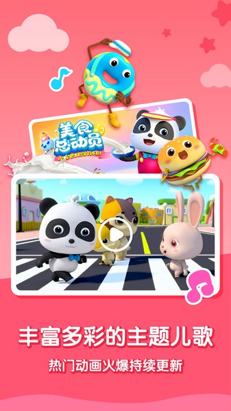 益智互动:跟着卡通动物哼唱儿歌,讲童话故事哄睡小猫咪,和熊猫奇奇、妙妙一起制作美食等。