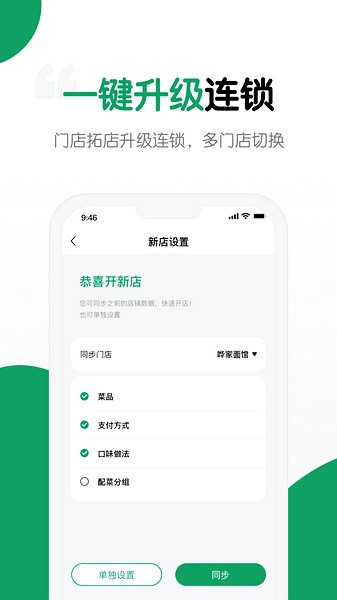 3、一键升级连锁:门店拓店升级连锁,多门店切换。