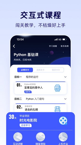 2、扇贝编程采用了互动教学模式,通过编码实践和练习,用户可以快速掌握语法、算法和代码逻辑,加深对编程的理解。