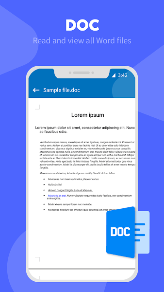 Docx查看器,所有文档查看器都有一个简单而优雅的阅读器屏幕,其中包含基本控件。
