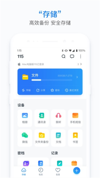 115生活APP支持相册、通讯录、文件等备份,为用户提供安全、稳定、高效和智能的云存储服务;支持VIP用户线上私信交流,以及便捷的云记录功能。