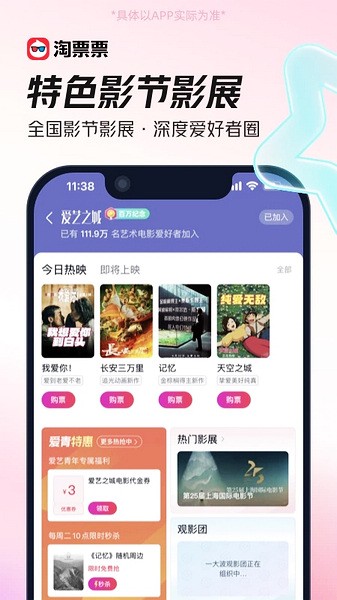 淘票票已经覆盖 300+ 城市,3000+ 影院,让你享受快速低价的购票体验