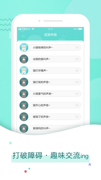 点击app提供的猫咪语音、狗狗语音,就能收听到对应的语音内容了;