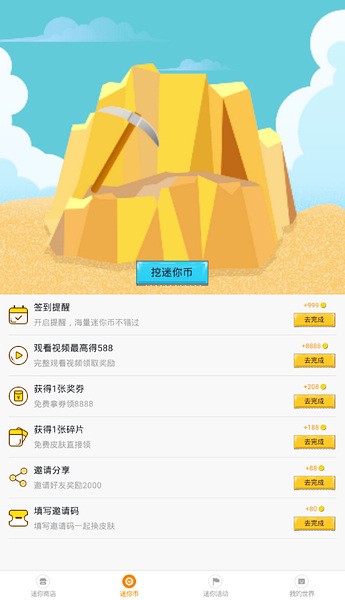 4、进入迷你币页面,用户可以通过每日签到,或是做任务获取迷你币。