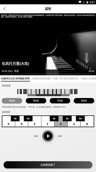 3、用户可以随意选择软件内的钢琴曲目进行播放,也可以跟着钢琴曲目练习。