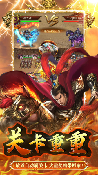 【躺收益,离线挂机轻松当霸主】放置战斗自动刷副本,离线也能积累粮草、元宝和经验,上班摸鱼一键收资源,零氪也能囤神装、抽神将!