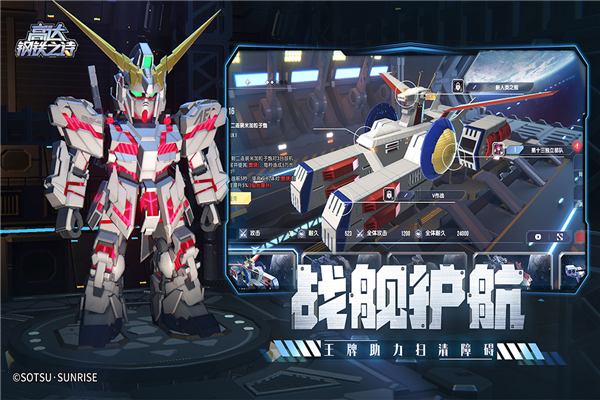 《高达钢铁之诗》中对诸多经典战舰均完美还原,对武器展开与收纳、舱门的开启和关闭等战舰特有的动态表现进行打磨。在战舰系统中,可以对舰队所属全体战舰进行批量化养成,也可以针对自己喜欢的战舰做单独养成并加入战斗,为场上的机体小队提供炮火援护。