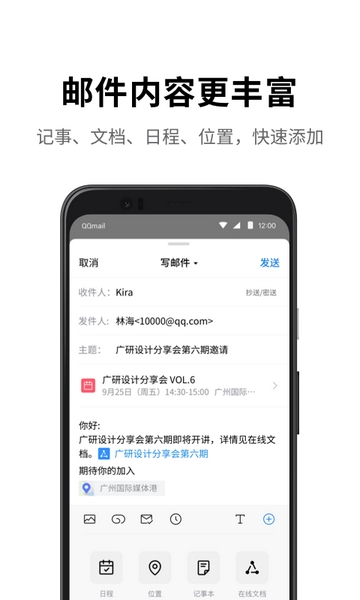 ·全面支持邮件通用协议,除QQ邮箱以外,还可添加多种其他邮箱