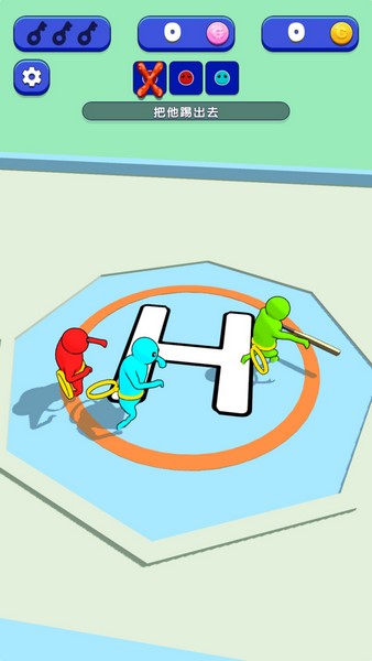 人群战争是一款对战类游戏,玩法规则很简单,只要将对手赶出场外即可获胜了,同样我们自己出场也会导致失败。这里的场地非常多,每个地点都需要不同的战略思路。另外我们还可以使用各种道具和武器将对手击出场外。随着游玩可以获取到大量的金币奖励,能够在商店中去解锁喜欢的角色形象和一些新的道具装备。