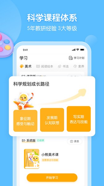 另外,app里的课程设计得很科学,分阶段引导孩子学习,不会太难也不会太简单。而且还有丰富的艺术礼盒和趣味互动环节,让学习变得更有趣味性,提高孩子的参与度。