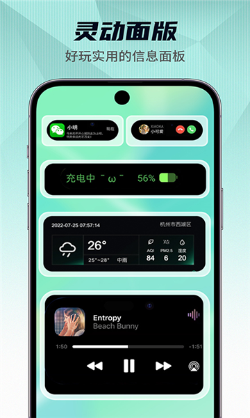 你可以随心所欲地设置灵动岛的大小和位置,完美融入你个性化的手机页面。让你的手机界面充满美感和个性!