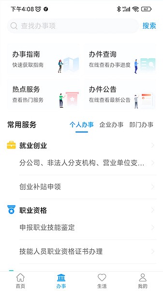 1、个人办事:支持个人办事,周口市居民可以在软件上进行就业、创业等事务办理。