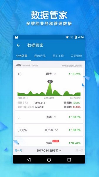 2、询盘:新询盘实时提醒,查看并回复询盘,查看买家profile和行为数据,客户商机一手掌握。