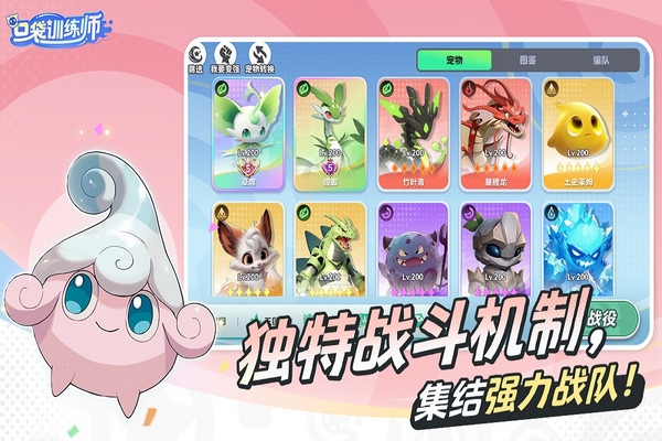 口袋训练师是一款根据宝可梦为题材进行创作的精灵养成冒险手游,我们将成为一个训练师去锻炼我们的口袋妖怪,在不断你的磨炼和挑战之后,你最终将成为一个伟大的精灵培训师,每个精灵角色都可以通过进化来解锁全新的技能和形态,快来下载试试吧!
