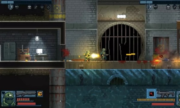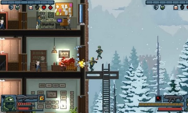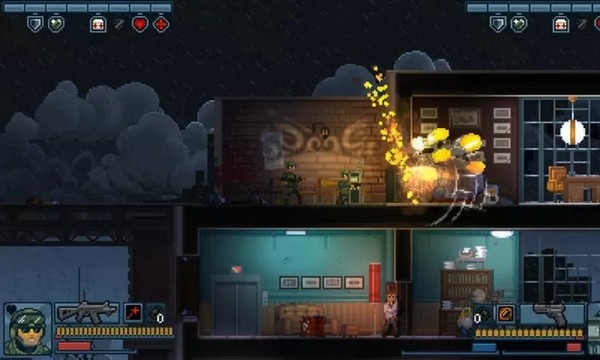 破门而入行动小队是一款疯狂的老派横版卷轴动作游戏,游戏里你将扮演特警士兵,被派去处理美国 Nowhere 市的坏人。