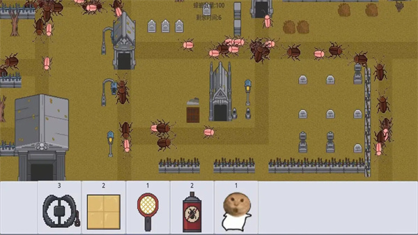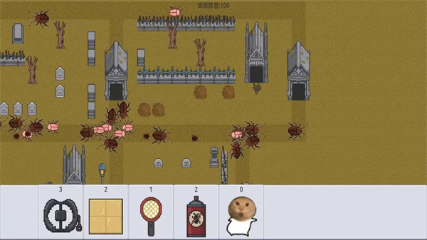 4、使用下方的道具栏的道具,拖到游戏内,消灭蟑螂