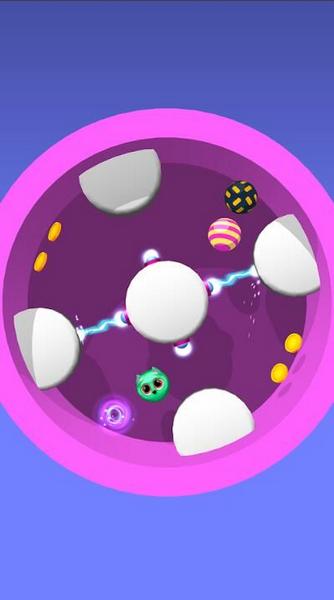 2、玩家需要操控类似小球的物体在带有各种障碍物的圆形区域内移动,屏幕上方的数字代表游戏的得分或剩余次数等。