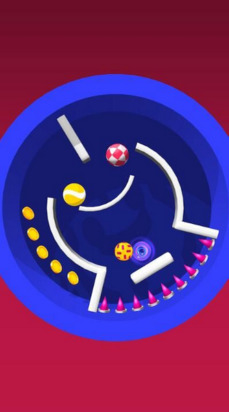 游戏特色包括多彩的艺术图形、简单的规则操作以及全免费体验。每个关卡都有独特的视觉设计,物理机制贯穿始终,让解谜过程充满科学性和策略性。玩家需要躲避障碍,引导小球避开紫色陷阱并将其送入目标光圈。限时高分挑战增加了游戏的趣味性和竞争性。