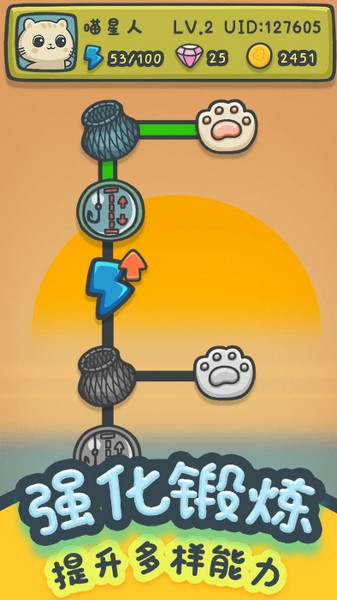 搜集各类渔具、升级猫咪的天赋以捕获更多的鱼!