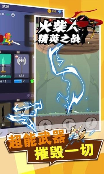 1、超级简约清新的游戏画面,卡通的火柴小人开启了刺激的格斗冒险挑战