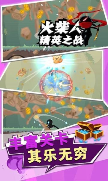 《火柴人精英之战》是一款超好玩的休闲闯关手游,玩法简单但很有挑战性。游戏里有各种武器可以解锁,还有丰富的关卡等着你去攻克。每个关卡都有不同的机关和危险,比如尖刺、火焰什么的,得小心躲避。最棒的是,你可以选择不同的火柴人英雄,每个都有独特的技能,战斗起来特别刺激。
