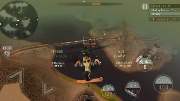 1、游戏操作简单易上手,玩家可以通过虚拟按键来模拟直升机的飞行以及射击。
