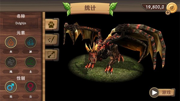 1、进入游戏创建名称,选择巨龙元素,游戏前玩家还可以购买其它巨龙