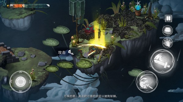 战斗系统主打“轻攻击+翻滚”的极简操作,但策略深度藏在节奏判定中:BOSS战需根据音乐鼓点闪避,蓄力斩击时机影响连招倍率。手残党可专注解谜,硬核玩家则能挑战无伤通关成就。