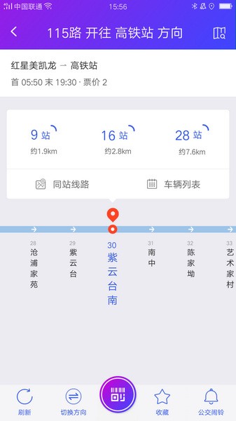 站点查询是以乘车站为中心,查询经过该站的所有线路及方向列表,用户选择线路及方向后,即可查询到经过该乘车站的最近一辆车的实时信息。
