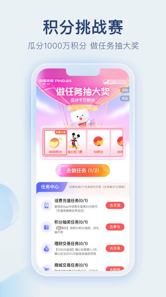 软件优势 1、首页大变身:常用生活场景(话费充值、转账、生活缴费、信用卡还款等)一键直达; 2、丰富活动不打烊:赚积分、抽奖、品牌优选、优惠信息、1积分专区,精彩每一天; 3、一路理财,持续任性:精选平安集团优质资产,优势看的到,收益高到没朋友; 4、品质购物:支持积分支付,精选货品,潮流单品,为您准时送达; 5、个人资产页面优化:一面提升资产、一面玩赚积分,面面俱到; 6、卡包来了:预付卡、银行卡、优惠券,惊喜随身带