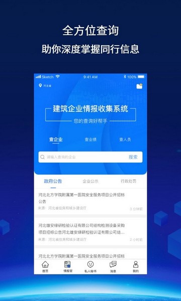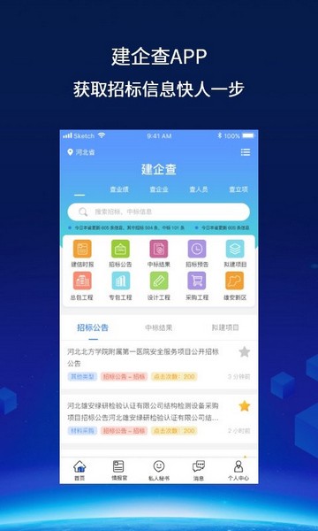 建企查app是一款专业实用的企业工程查询软件,在这里,不仅涵盖了全国所有建筑行业的招标信息,每天有哪些项目在招标都会为你实时更新,多渠道第一时间推送至你的手机,而且可以根据不同工程类型来查看招投标信息,以确保搜索信息更加精确,每个分类斗鱼建筑资质一一对应,当然了,这款软件还可以查询竞争对手的相关信息,毕竟知己知彼才能够百战百胜。